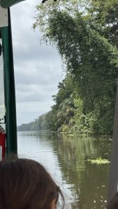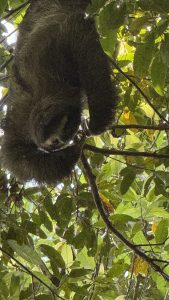 Once your attention adjusts, the world starts arriving without warning. Memories are jumbled across the two weeks, an abundance of wildlife. Sloths hung motionless where there had been only branches seconds before. Capuchin monkeys leapt onto our boat as we drifted through mangrove channels in Manuel Antonio, close enough to feel them land — and JC had been very clear beforehand: don’t smile. Bared teeth can read as aggression. There were fer‑de‑lance snakes, coati and agouti moving through the edges of paths; flashes of blue from tanagers; the unmistakable heft of toucans in the trees — Cosi’s favourites. Blue morpho butterflies skimmed across water like something briefly unbound by gravity, mariposa everywhere, hummingbirds stitching impossible colour into the air. And in many places the sound: Montezuma oropendolas calling constantly from the trees above us, impossible to ignore — less something to spot than something you found yourself inside.