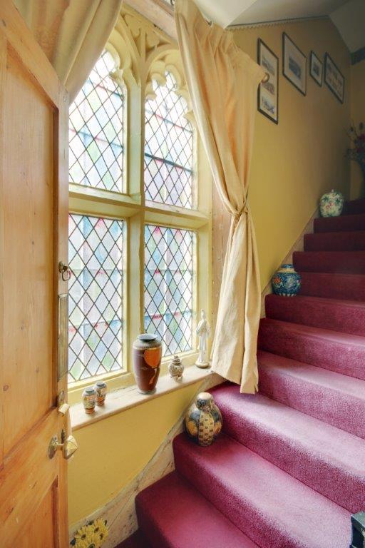 ‘I instantly felt safe when I first walked in to the apartment’ the owner told us. It was a big factor in helping her decide this was the place to make home. Actually there were a host of reasons why it captured her heart many years ago. Walking in to the sitting room and gazing out to sea has an instant appeal as does the thought of throwing open the bedroom curtains each morning to a view such as this. Then there's the wonderful kitchen which holds a dining table with ease. Both bedrooms are wonderful sizes and the master has a dressing area and en suite bathroom. That may be enough to tempt most of you but add to it the charm of the building and it feels irresistible. The staircase inside the apartment is glorious, a real craftsman's treat, there's the gothic door to the pantry in the kitchen and take time to study the wonderful doors throughout. We loved the colour dappling through the windows as you walk into the apartments lobby and also on the landing.