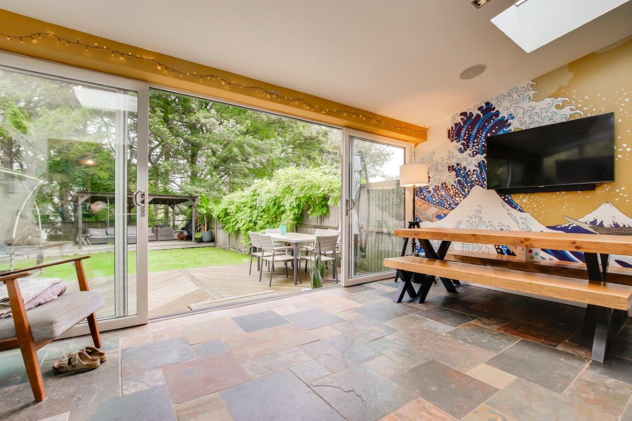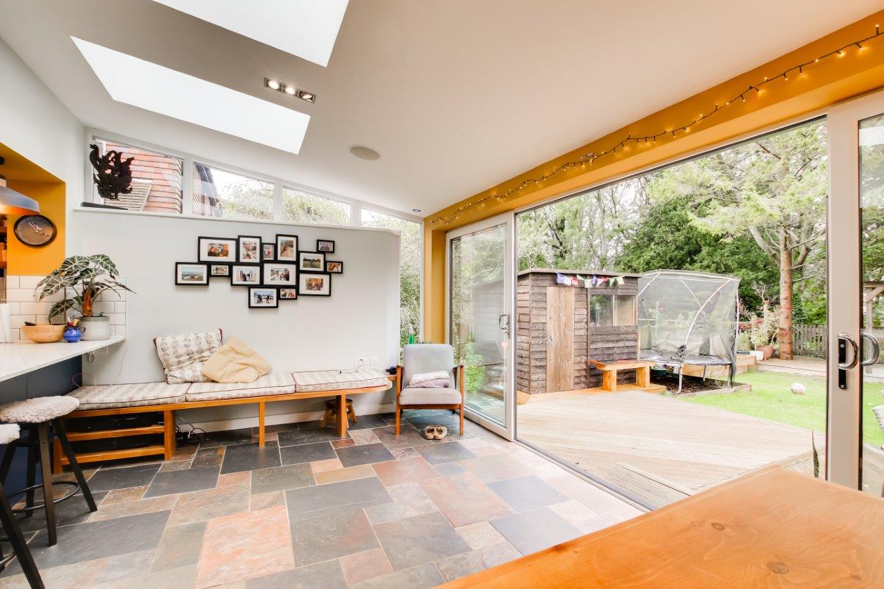 Whilst here the home has been improved, the kitchen area so much better with the alterations to the family /dining room. It's a space that draws you to it and with the doors wide open you can slip easily out to enjoy the garden all day long. The covered deck is a wonderful place to enjoy this garden from and it creates a very special atmosphere. Behind the home is a former railway cutting and when the chance came to purchase part of it the opportunity was jumped at. It adds yet another wonderful dimension to an already special home.